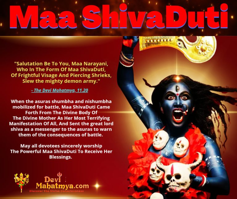 “Salutation Be To You, Maa Narayani, Who In The Form Of Maa ShivaDuti, Of Frightful Visage And Piercing Shrieks, Slew the mighty demon army.” – The Devi Mahatmya, 11.20 When the asuras shumbha and nishumbha mobilized for battle, Maa ShivaDuti Came Forth From The Divine Body Of The Divine Mother As Her Most Terrifying Manifestation […]