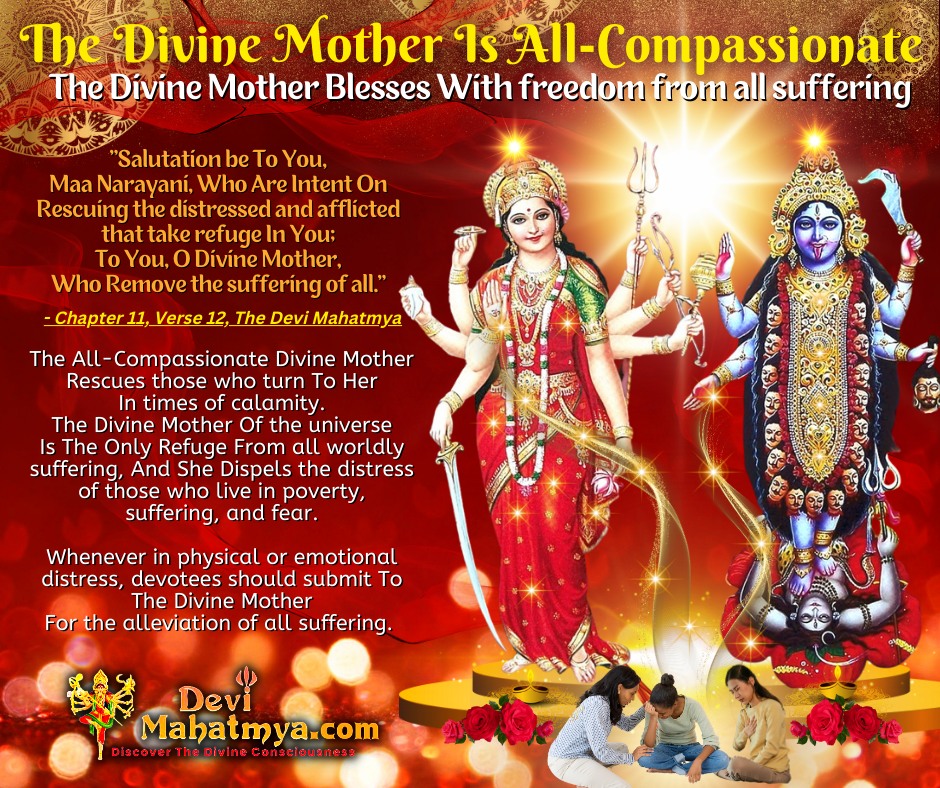 𝙏𝙝𝙚 𝘿𝙞𝙫𝙞𝙣𝙚 𝙈𝙤𝙩𝙝𝙚𝙧 𝙄𝙨 𝘼𝙡𝙡-𝘾𝙤𝙢𝙥𝙖𝙨𝙨𝙞𝙤𝙣𝙖𝙩𝙚The Divine Mother Blesses With freedom from all suffering “Salutation be To You,Maa Narayani, Who Are Intent On Rescuing the distressed and afflicted that take refuge In You;To You, O Divine Mother,Who Remove the suffering of all.” – Chapter 11, Verse 12, The Devi Mahatmya The All-Compassionate Divine Mother Rescues those […]
